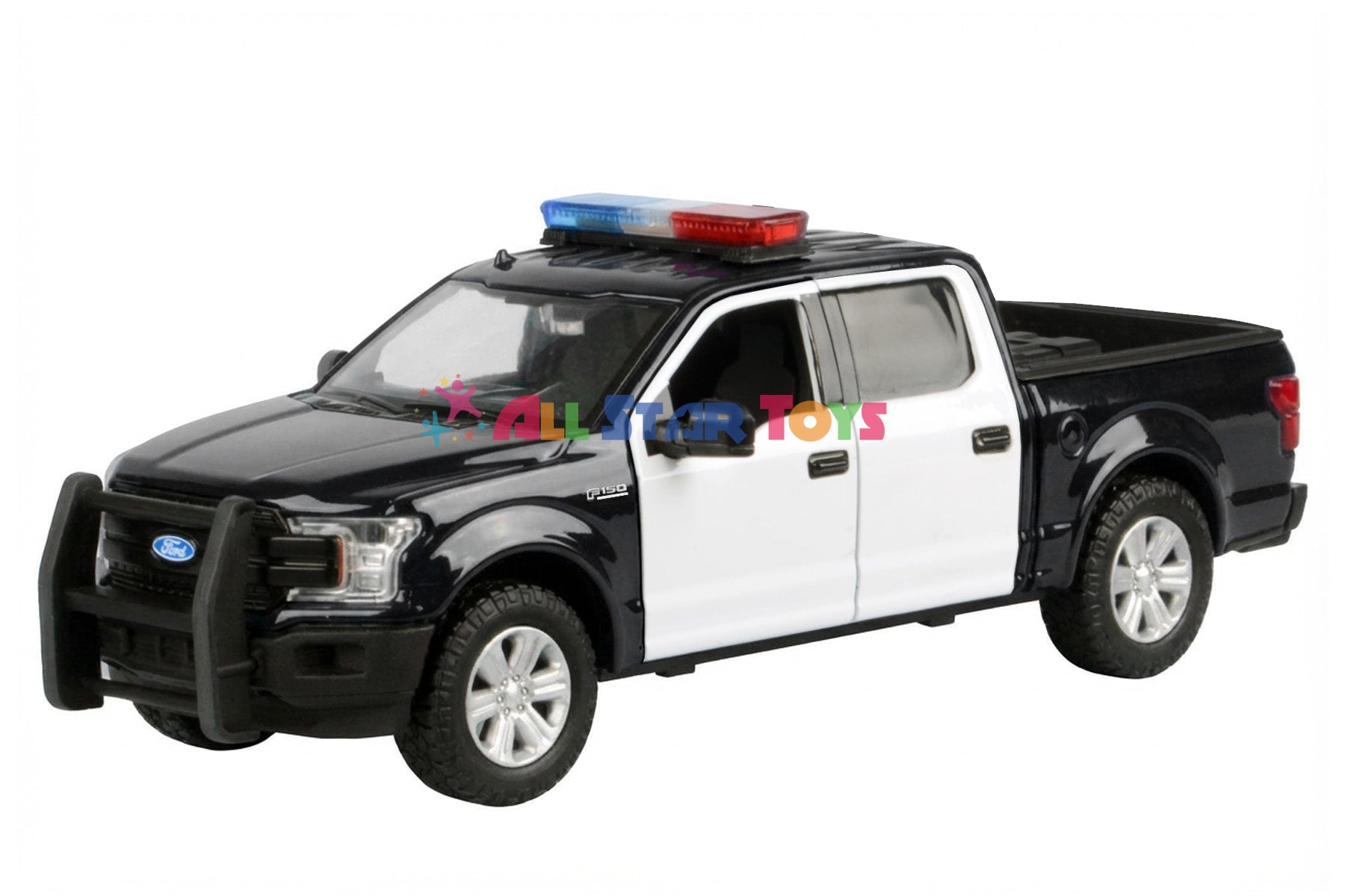 Motormax 1/27 2019 Ford F-150 Lariat Crew Cab Police Pickup Truck LIGHT & SOUND with Tool Box Unmarked BLACK 79542