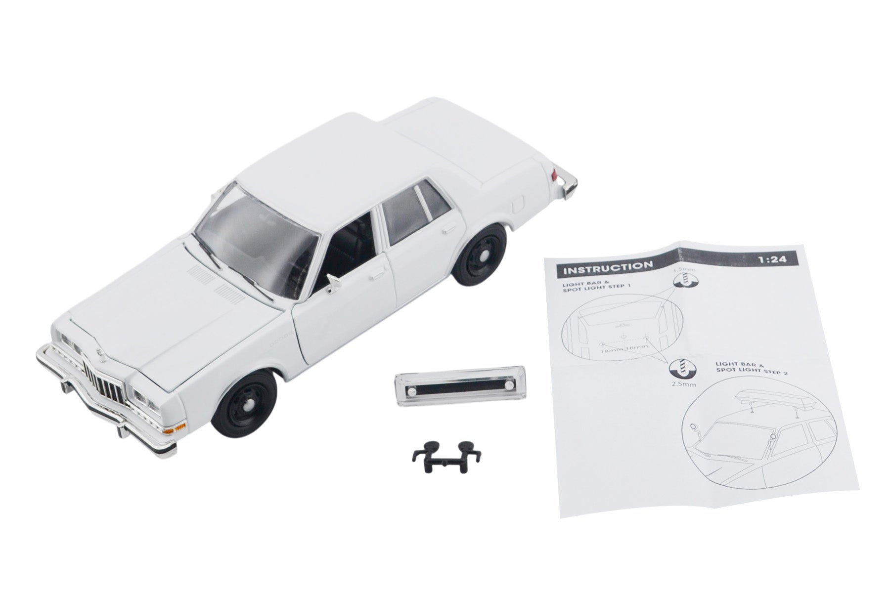 1986 Dodge Diplomat Police Pursuit Car White Blannk Builder Kit 1:24 Diecast Model Toy Car by MOTORMAX 76475