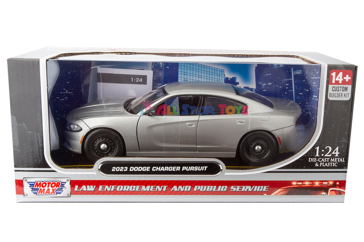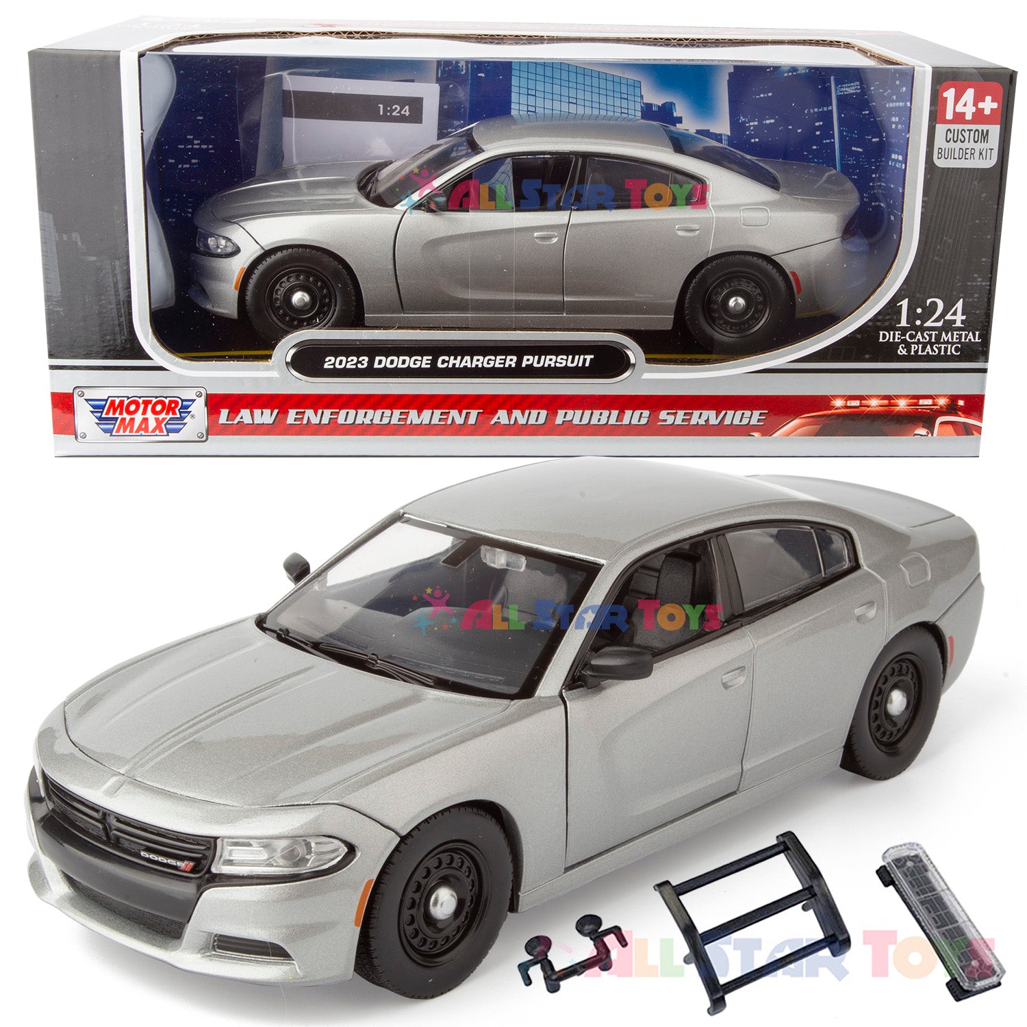 2023 Dodge Charger Police Pursuit Car Blank Silver w/ Light bar 1/24 Diecast Model Builder Kit Motormax 76996