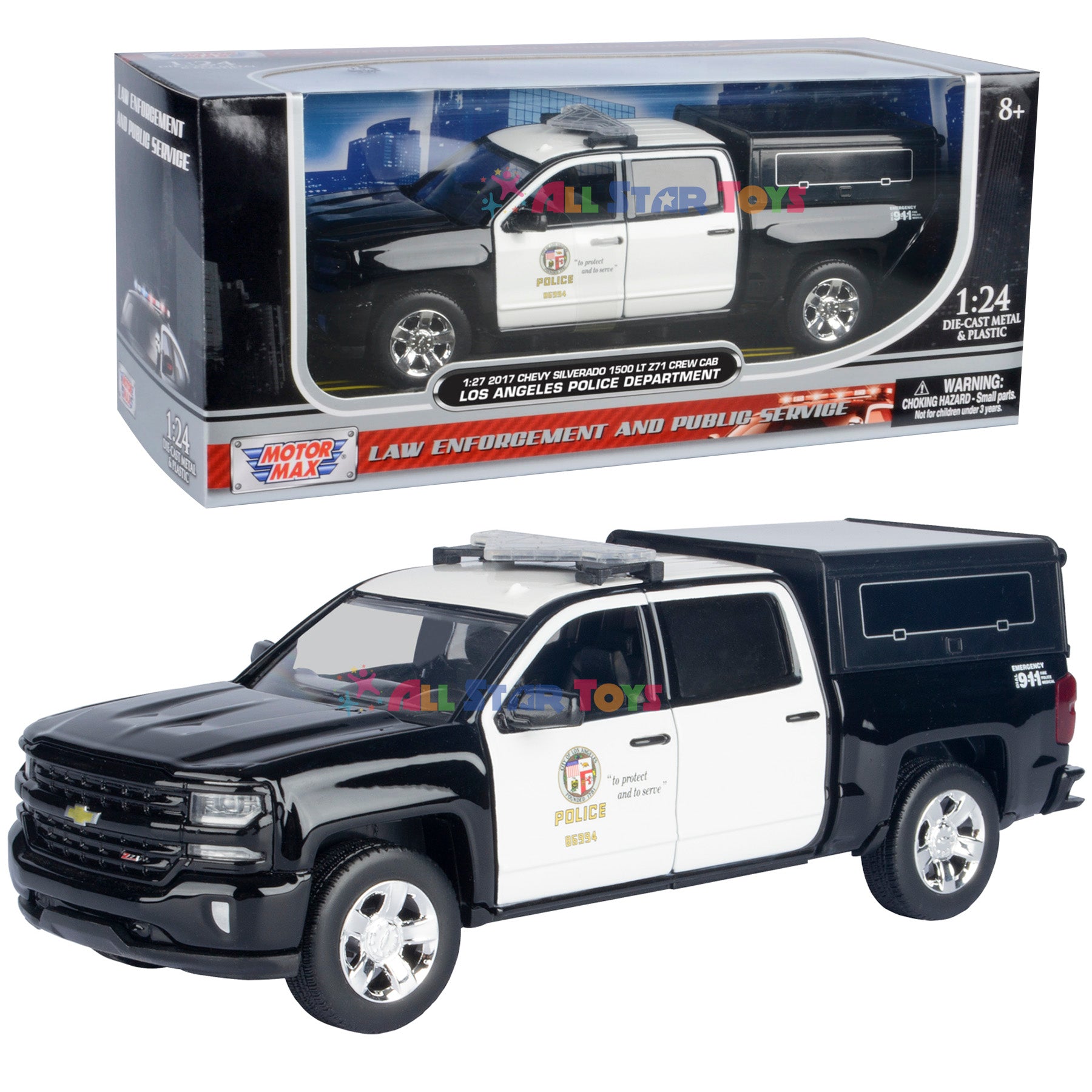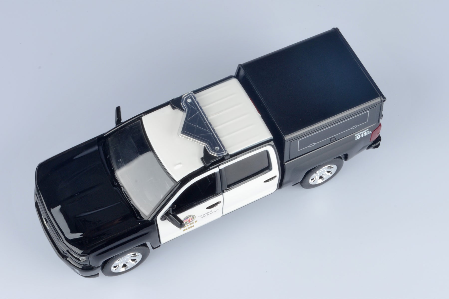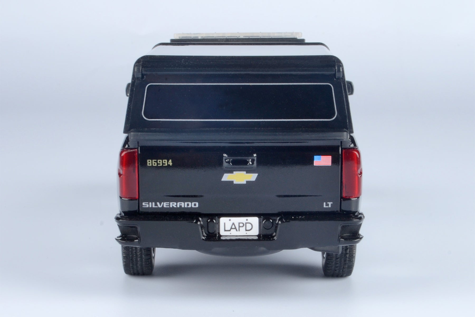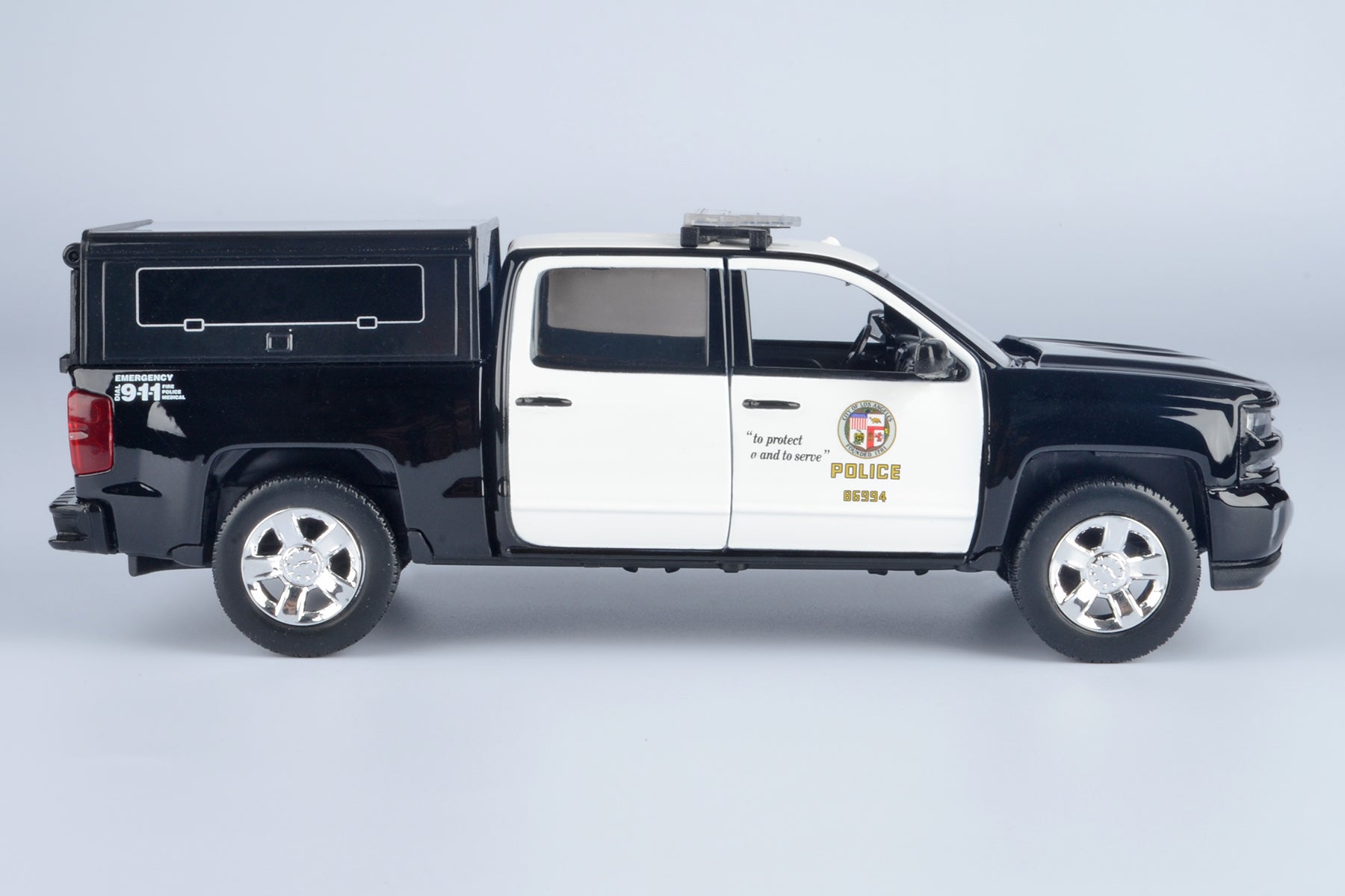 2017 Chevy Silverado 1500 LT Crew Cab LAPD (Los Angeles Police Department) Police Pickup Truck with Camper Black&White 1/27 Diecast Model Motormax Law Enforcement Series 76633