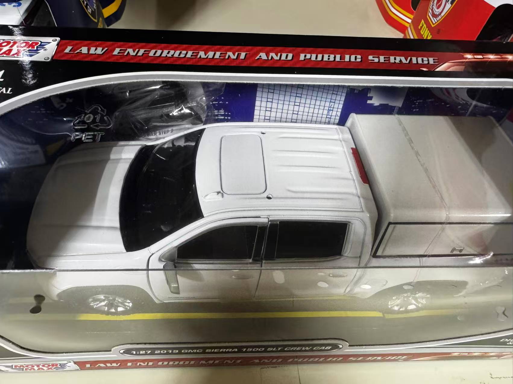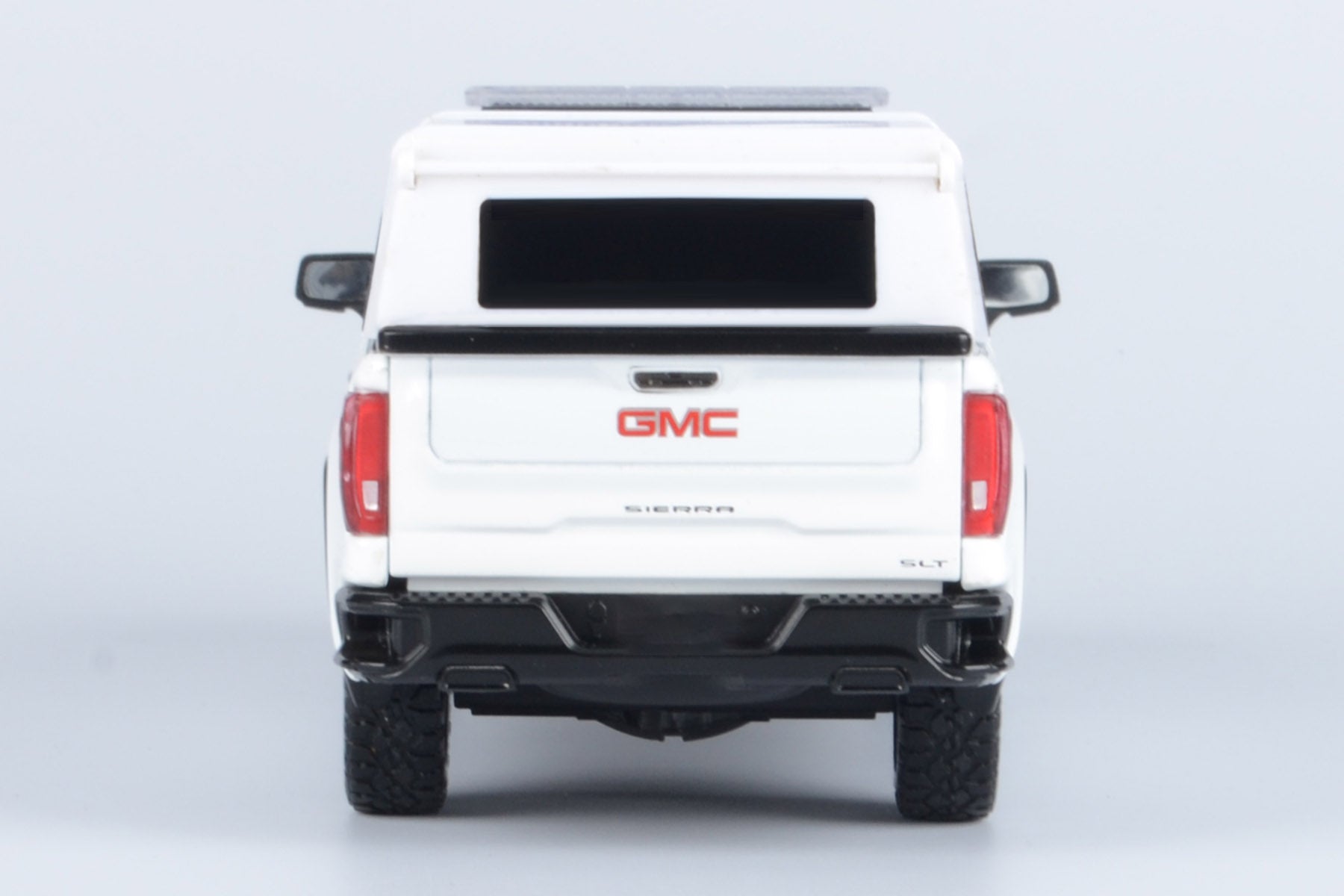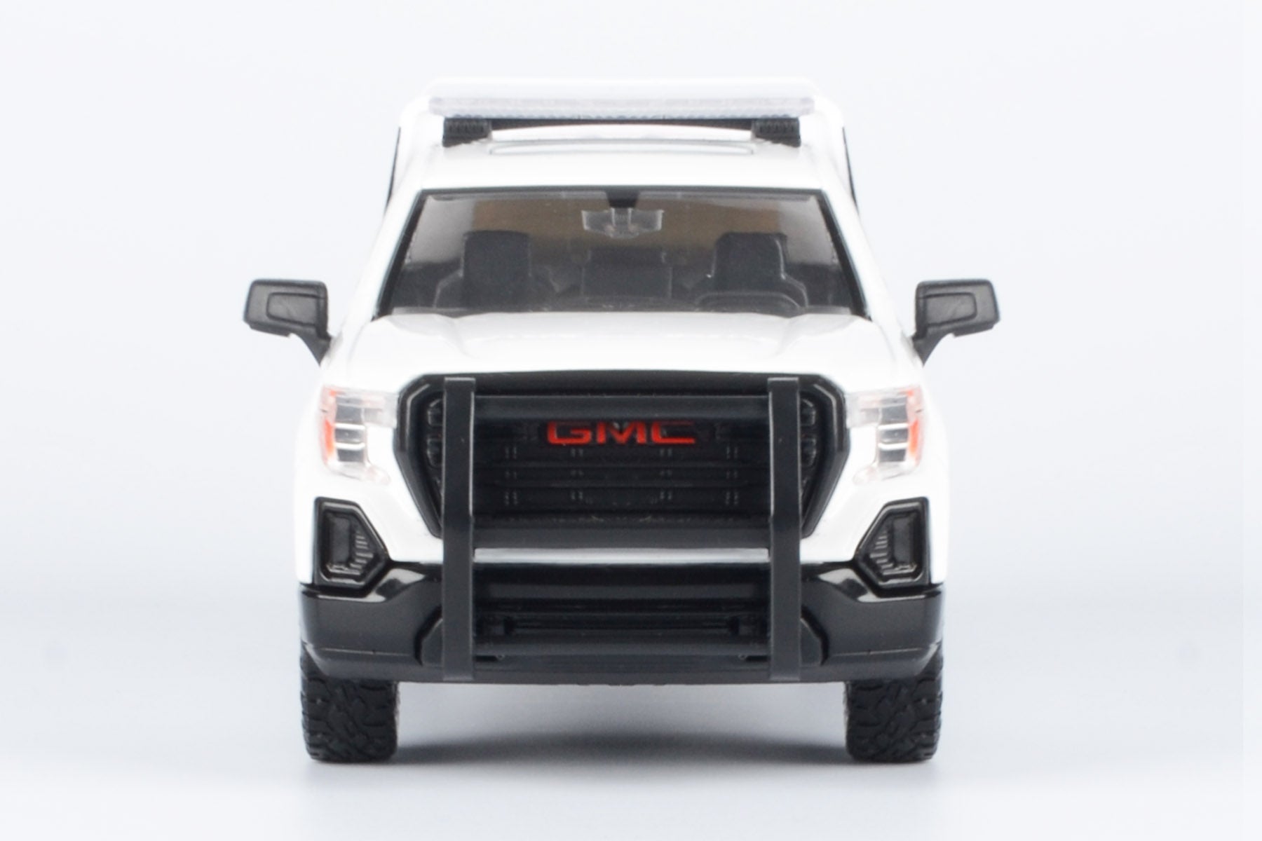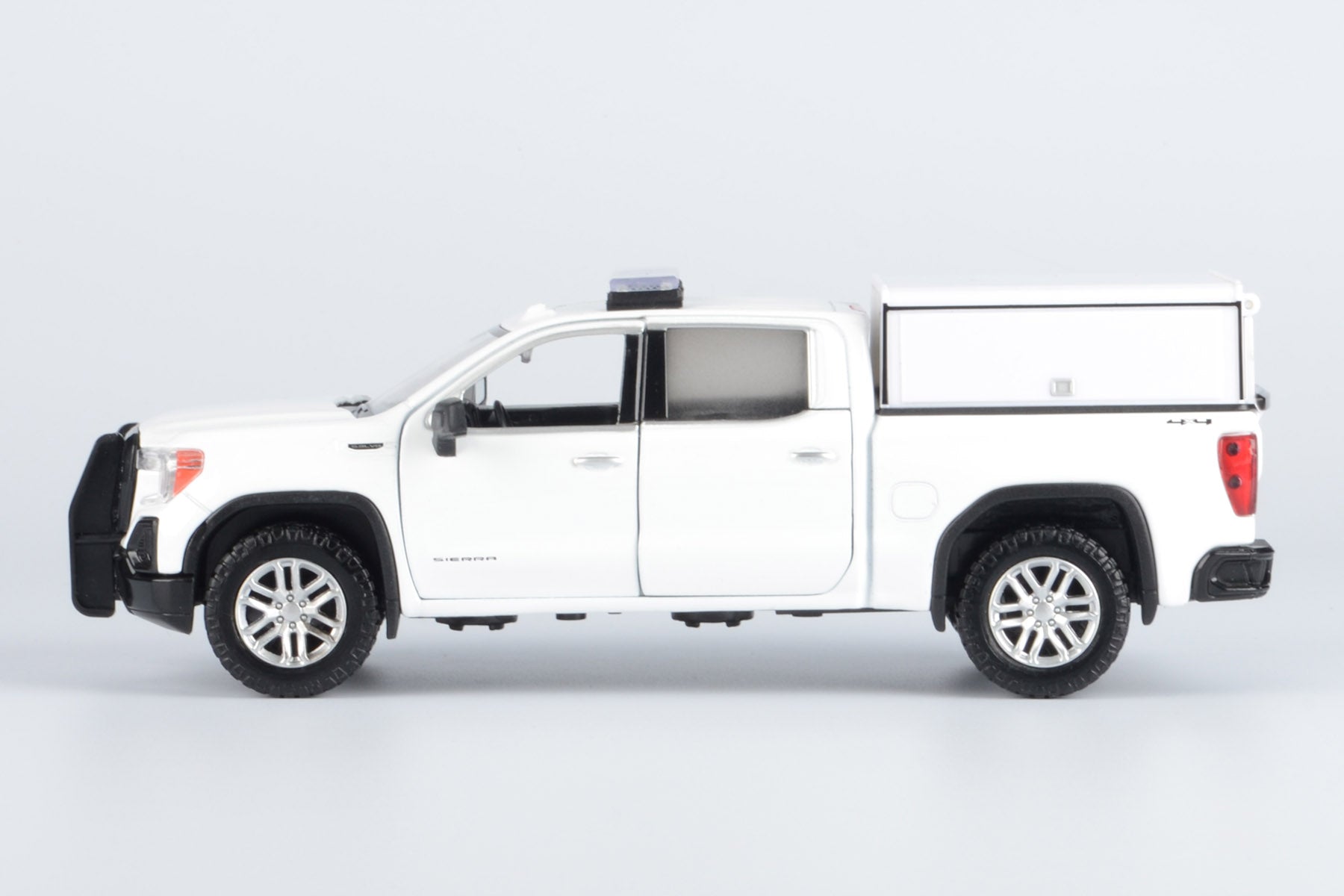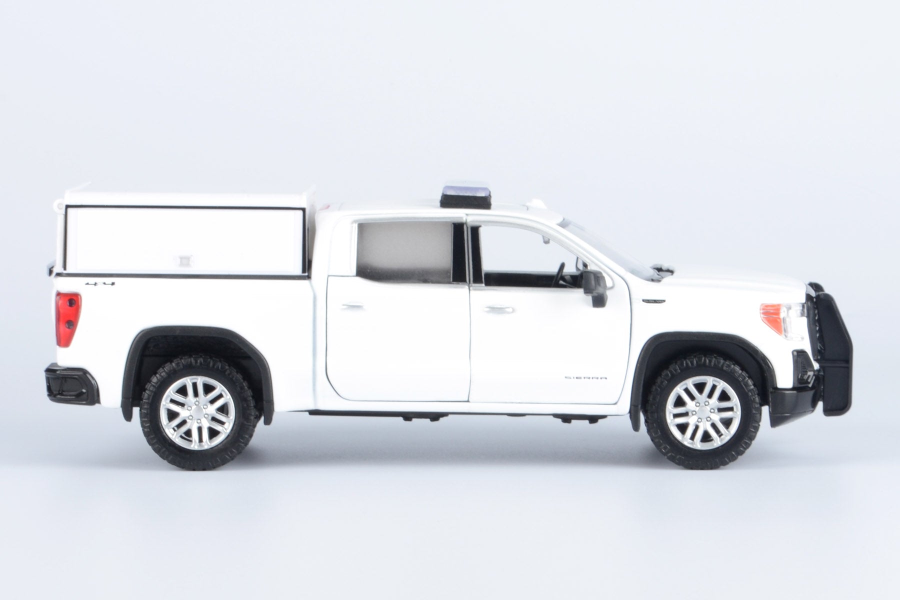 2019 GMC Sierra 1500 SLT Crew Cab Police Pickup Truck with Camper 1/27 Diecast Model Motormax Law Enforcement Series Builder Kit 76634 White