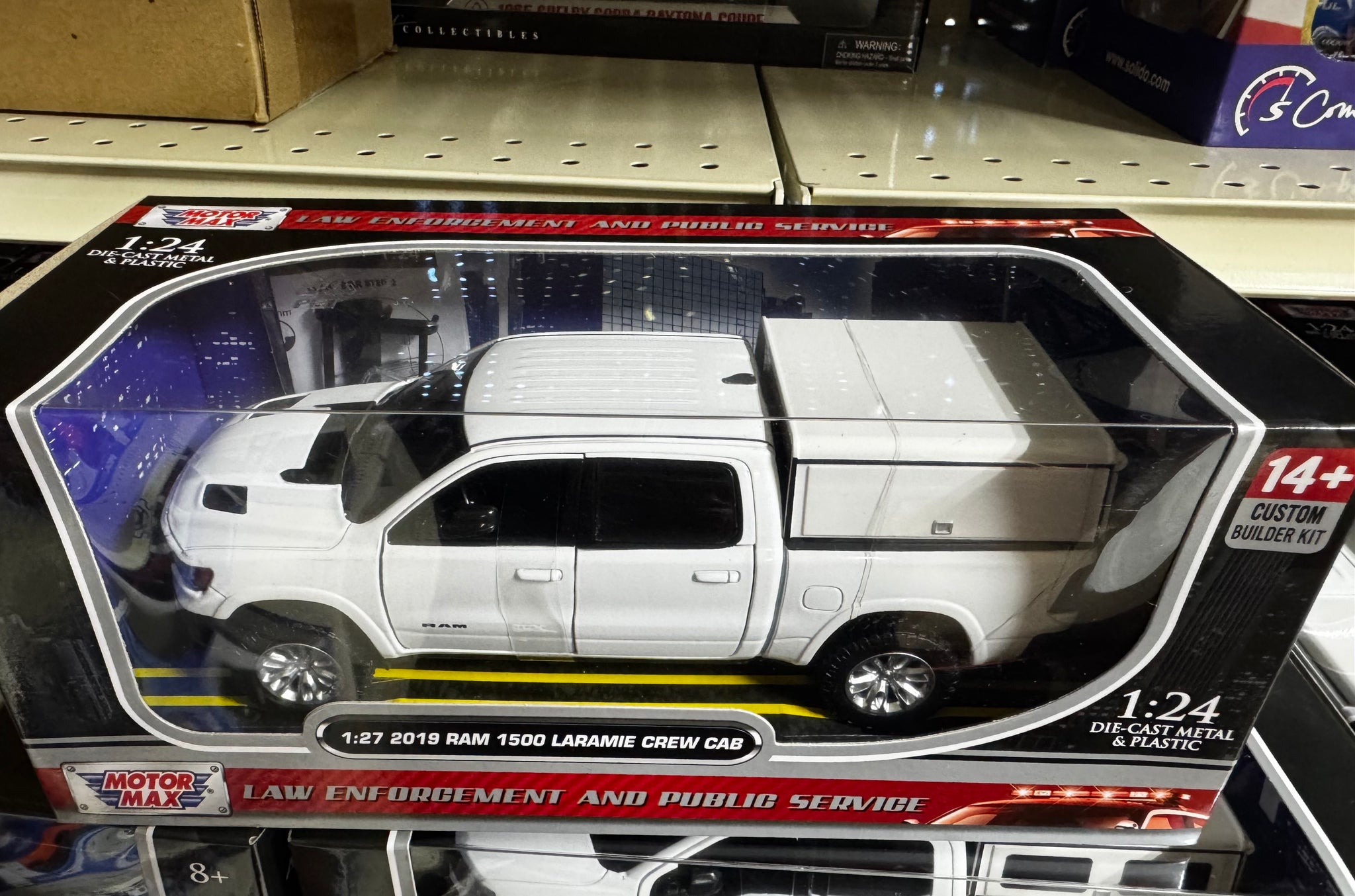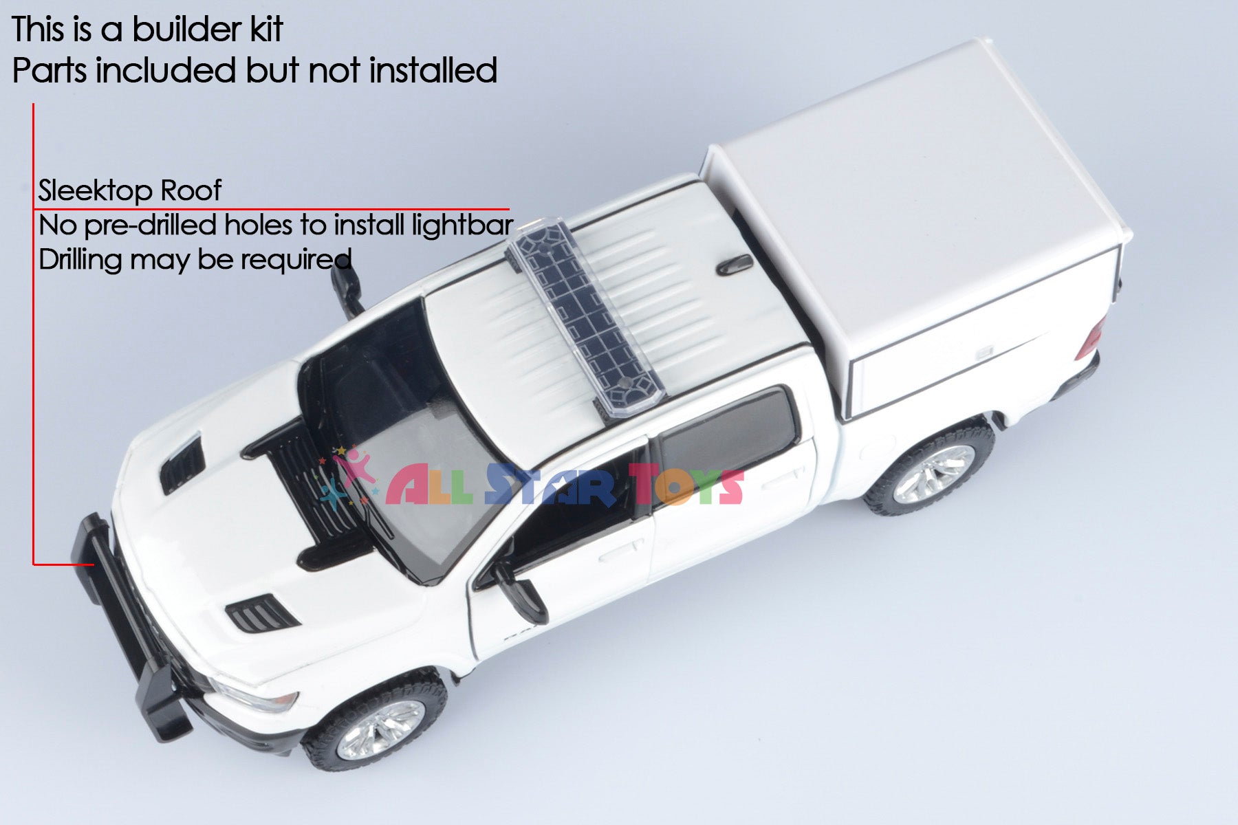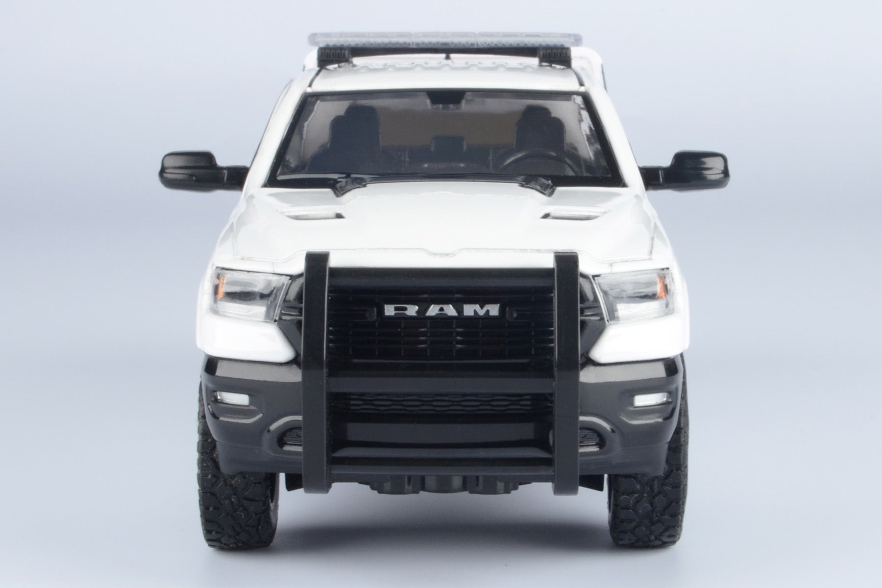 2019 Ram 1500 Laramie Crew Cab with Camper Cap Police Pickup Truck 1:27 Diecast Model Motormax Law Enforcement Series 76817 WHITE