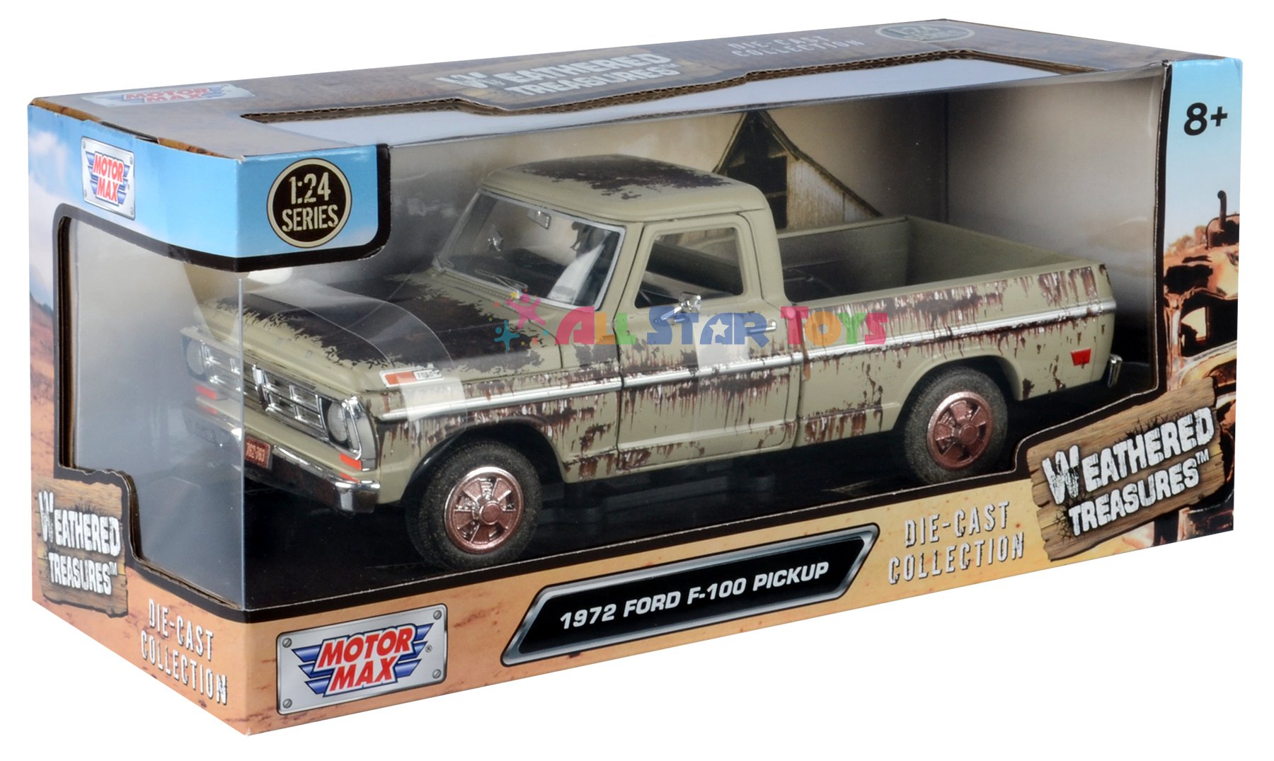 Motormax 1969 Ford F-100 Pickup Truck Weathered Treasures Barn Find 1/24 Scale Diecast Model Car 79074