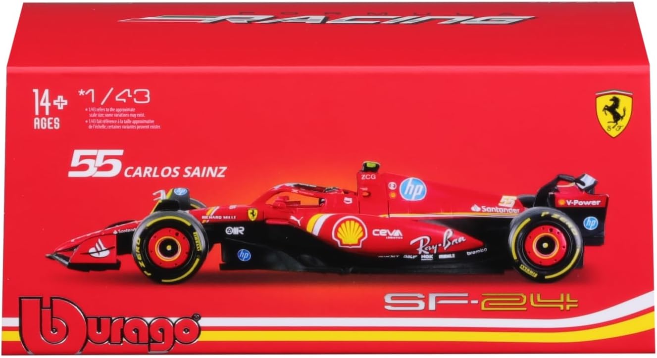 Bburago 1:43 Ferrari Racing 2024 Formula 1 SF-24 #55 Carlos Sainz with Helmet 18-36843-02
