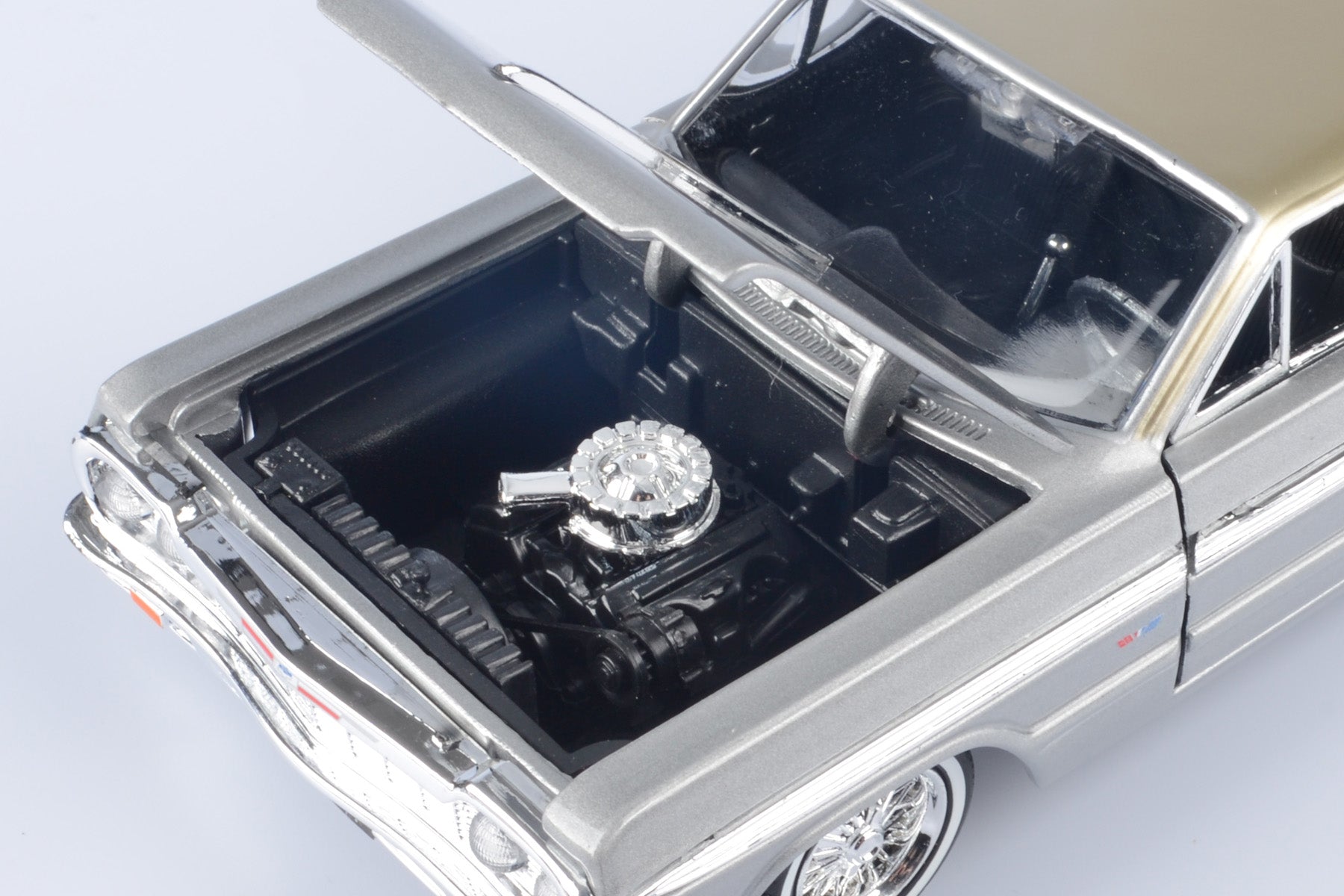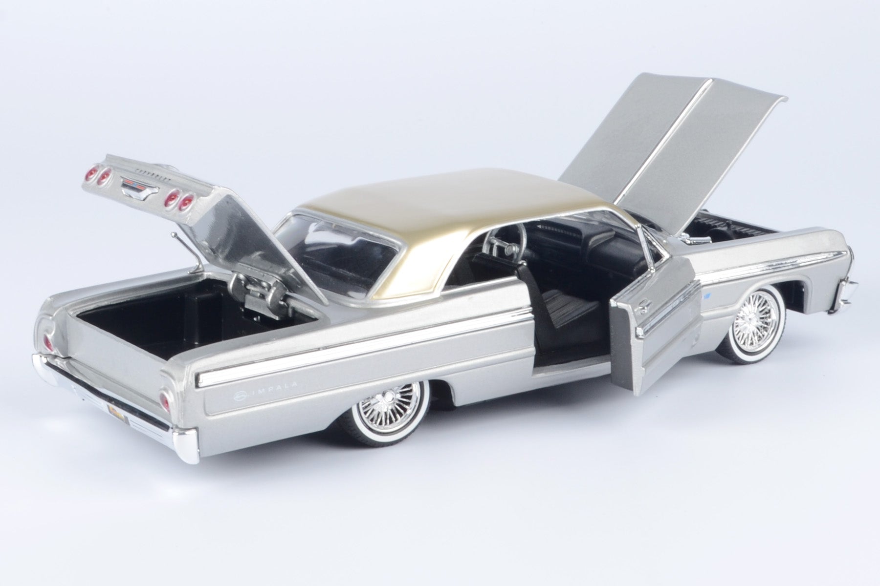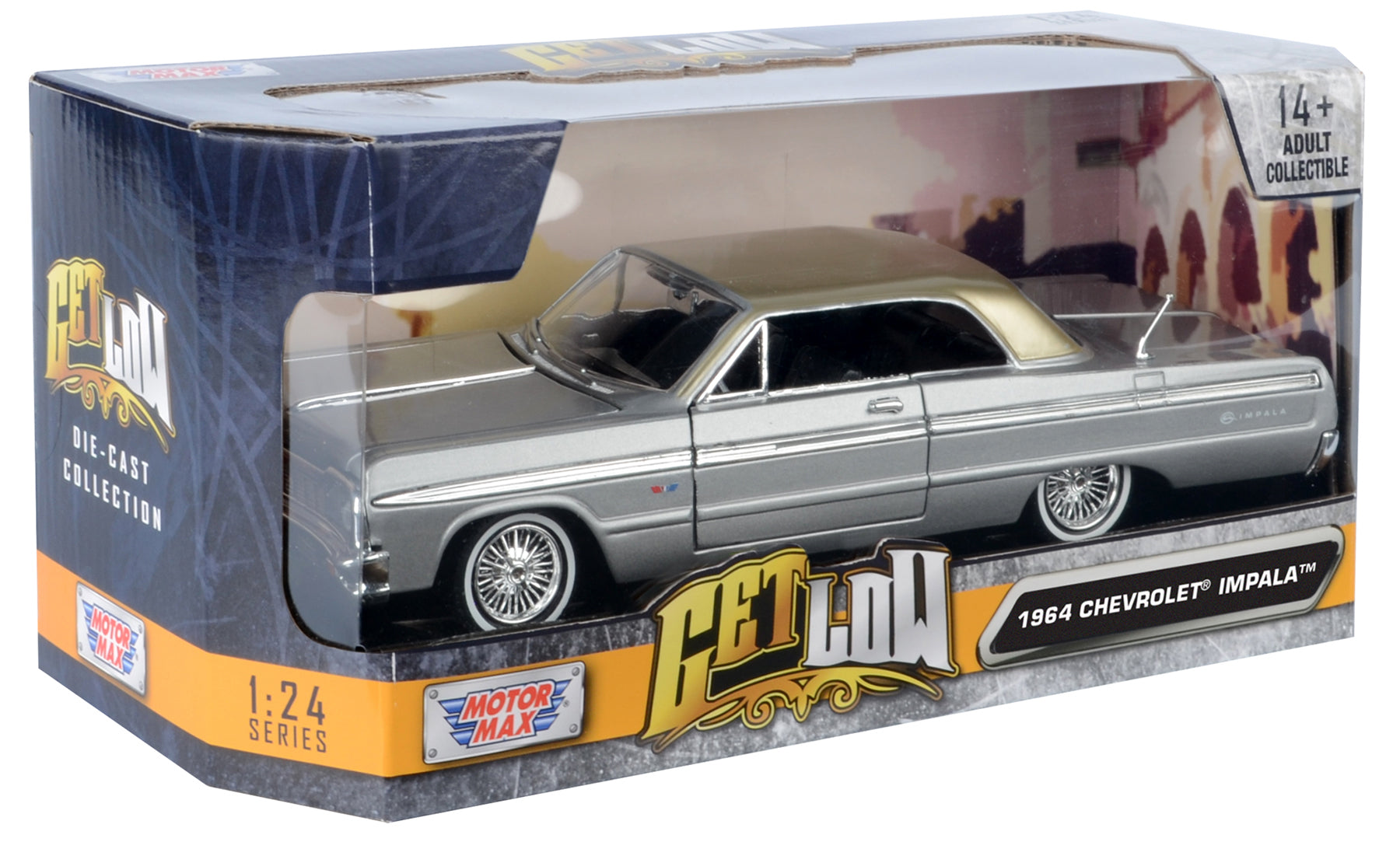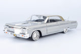 Motormax Get Low Series 1964 Chevrolet Impala Hard Top Lowrider 1:24 Diecast Model Silver 79021