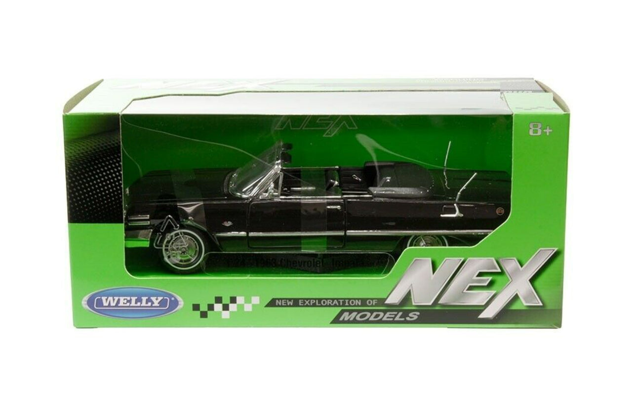 1963 Chevrolet Impala Convertible Black 1:24 Diecast Model Welly 22434W-BK